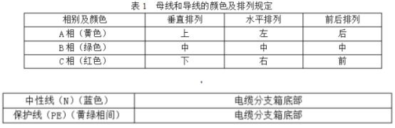 2.3.10箱內(nèi)一次聯(lián)接線應(yīng)選用質(zhì)量合格的電工銅及塑料銅芯線,其截面應(yīng)滿足負(fù)荷安全載流要求,接頭處應(yīng)搪錫。接線應(yīng)標(biāo)明相序。電部分至接地部分之間、不同相的帶電部分之間的安全距離應(yīng)大于20mm(復(fù)合絕緣恰當(dāng)簡(jiǎn)縮)。電器元件的設(shè)備應(yīng)契合下列要求:a)擺放規(guī)整,固定強(qiáng)健,密封出色。b)各元件能單獨(dú)拆裝替換而不影響其它電器及導(dǎo)線束的固定。熔斷器的熔體標(biāo)準(zhǔn)、斷路器器的整定值應(yīng)契合現(xiàn)場(chǎng)作業(yè)要求。