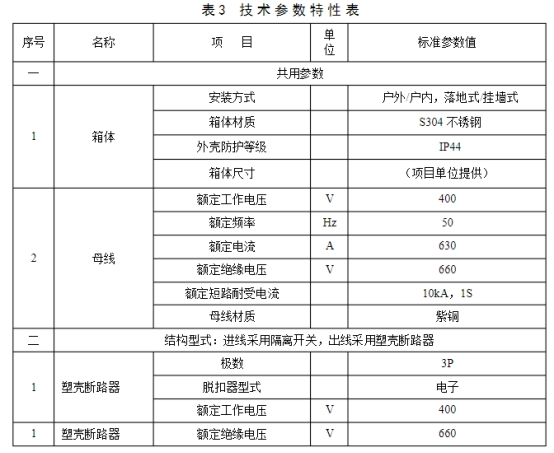 低壓smc電纜分支箱技術(shù)參數(shù)特性見表3